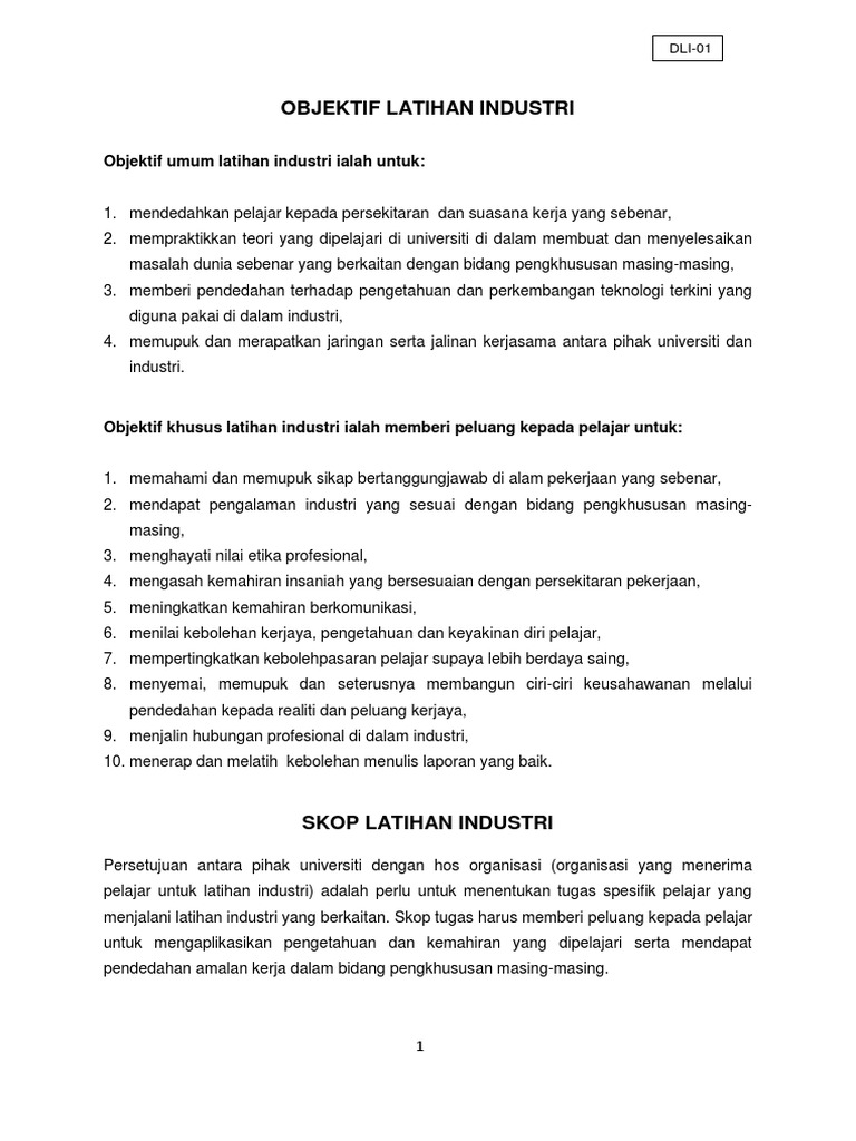 Objektif Dan Skop Latihan Industri