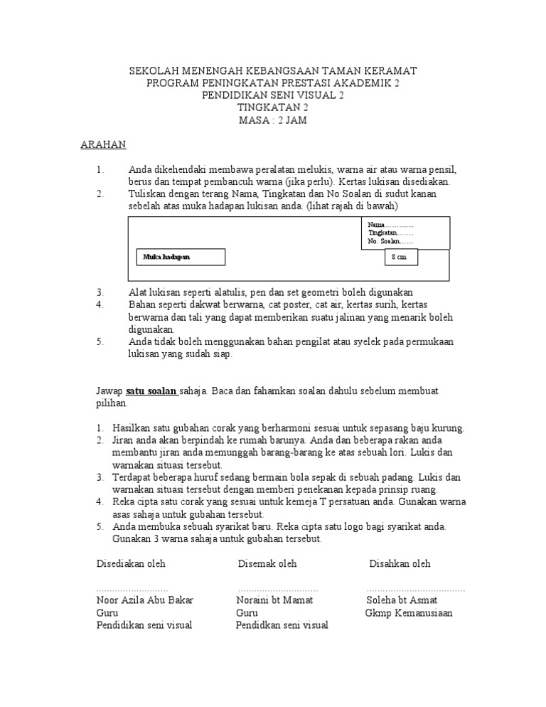 Himpunan Peperiksaan Pertengahan Tahun Pendidikan Seni Visual Tingkatan 2 Yang Penting Khas Untuk Para Guru Perolehi Pekeliling Terbaru Kerajaan