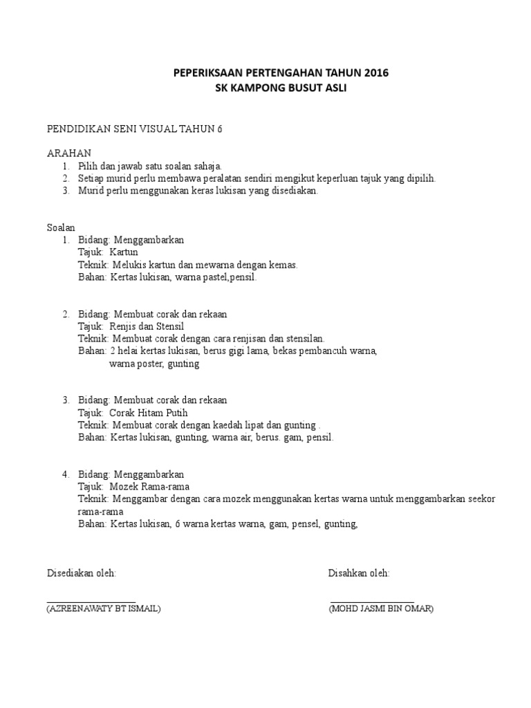 Bermacam Macam Peperiksaan Akhir Tahun Pendidikan Seni Visual Tahun 6 Yang Penting Khas Untuk Para Ibubapa Perolehi Pekeliling Terbaru Kerajaan