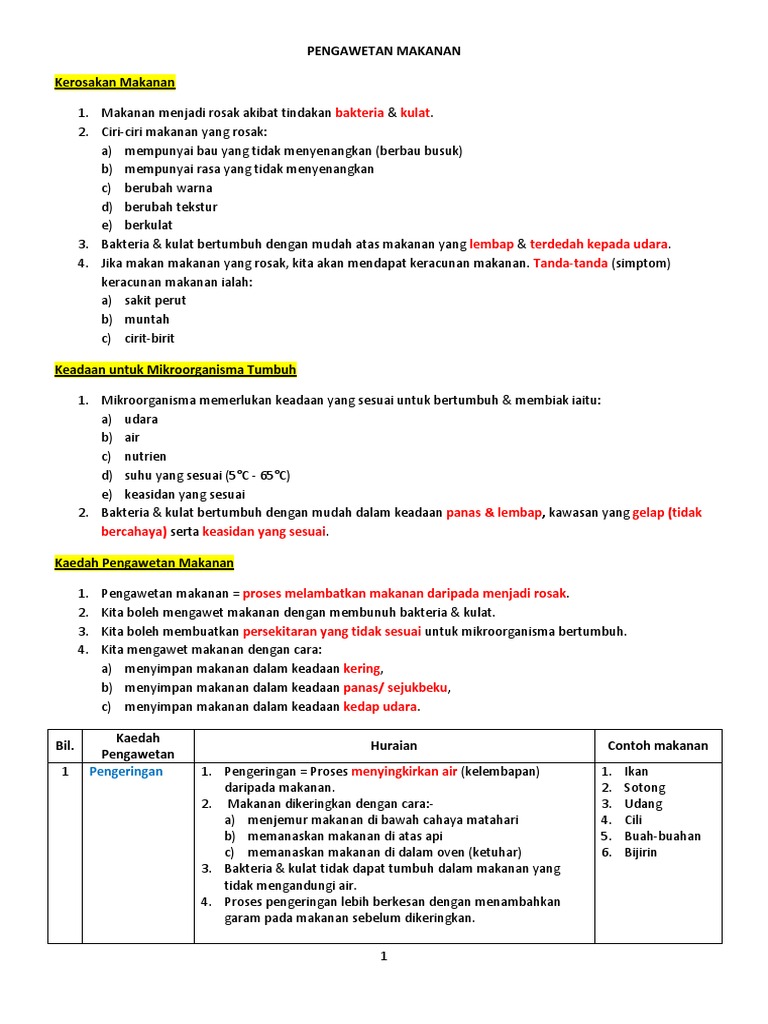Nota Sains Tahun 6 Unit 8 Pengawetan Makanan Chang Tun Kuet