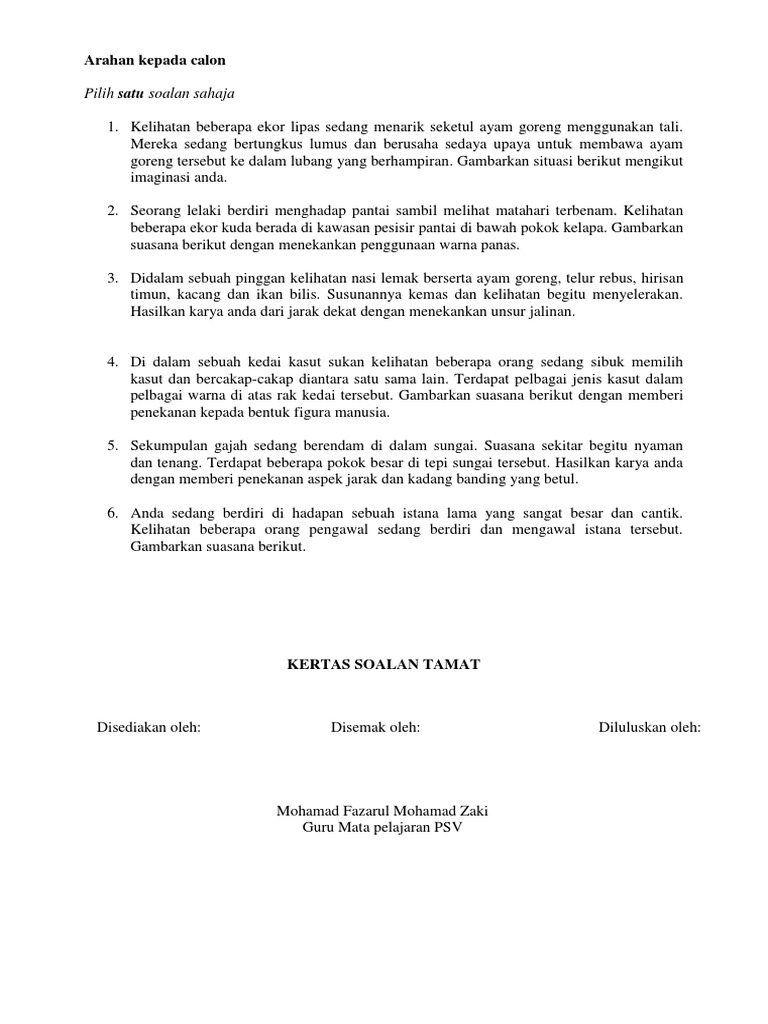 Contoh Soalan Seni Visual Spm Kertas 1 Di Joglo