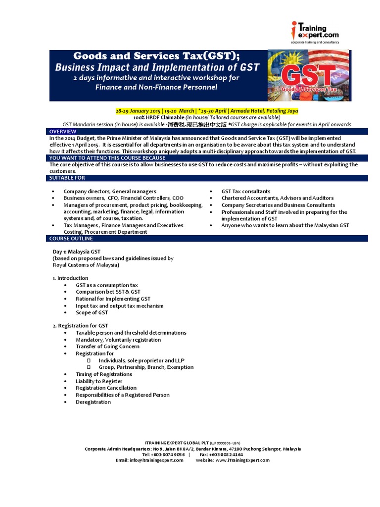 Gst 2 Days Public Program By Itrainingexpert Com In Malaysia