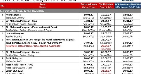 Stamps A La Carte Malaysia Stamps Year 2017 Final Stamp Schedule