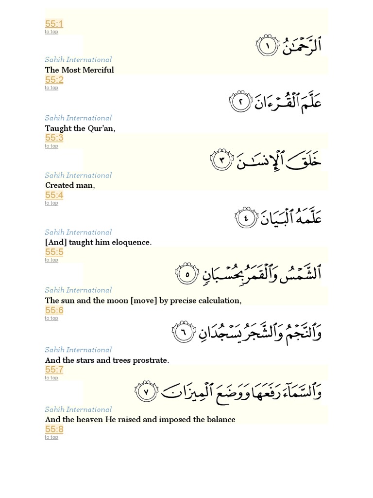 الرحمان is the 55th chapter of the qur an and consists of 78 ayats. ب س م الل ه الر ح م ن الر ح ي م. This surah lists many blessings and favors that allah has bestowed for us.