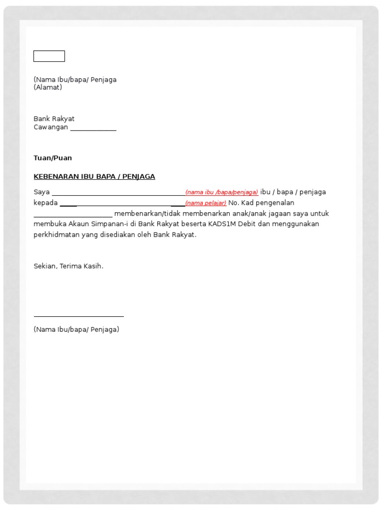 Contoh Surat Kebenaran Membuka Akaun Simpanan I Di Bank Rakyat Beserta Kads1m Debit Docx