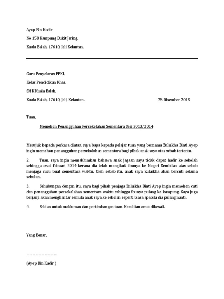 Contoh Surat Rasmi Memohon Cuti Sekolah Anak Rasmi Re Cute766