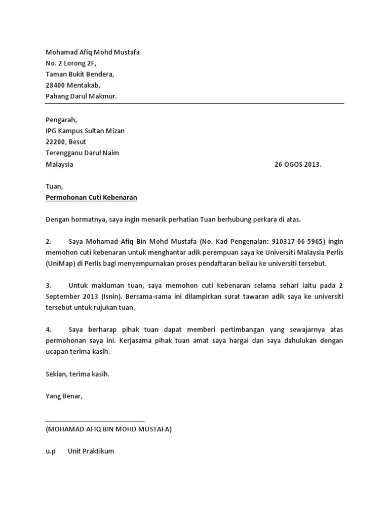 Contoh Surat Rasmi Memohon Cuti Kecemasan Surat Ras Cute766